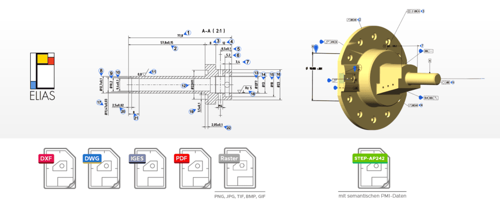 Mit dem Schwerpunkt auf einen reibungslosen Prüfplanungsprozess haben wir einen Überblick zu den integrativen Möglichkeiten der CAD-basierten Prüfplanung mit unserer Lösung EiPLAN in SAP gegeben. Das Highlight: 3D-Zeichnungsstempeln mit ELIAS infra CONVERT. Der voll in SAP integrierte End-to-End-Prozess ermöglicht auch die Nutzung von Vorgabedaten aus SAP (zum Beispiel Stammprüfmerkmale, Prüfmethoden, FHM, …). So ist nicht nur die initiale Erstellung von Prüfplänen viel einfacher sondern auch Zeichnungsrevisionen sind schnell und effizient bearbeitet. Der End-to-End-Prozess funktioniert natürlich auch bewährt mit 2D-Zeichnungen.